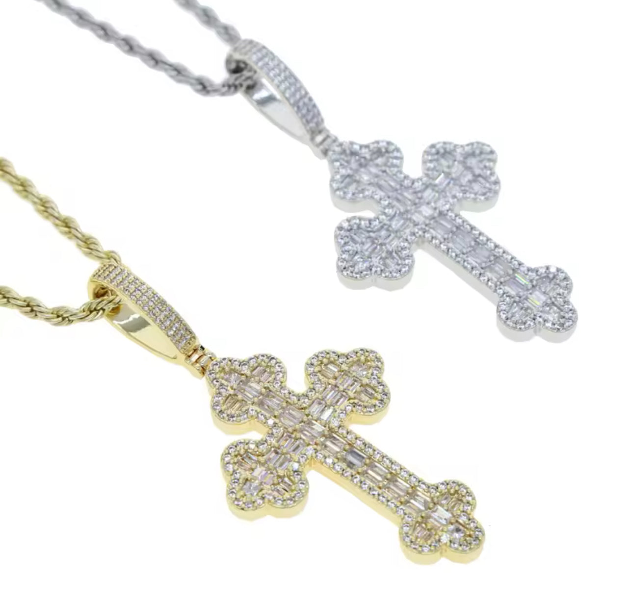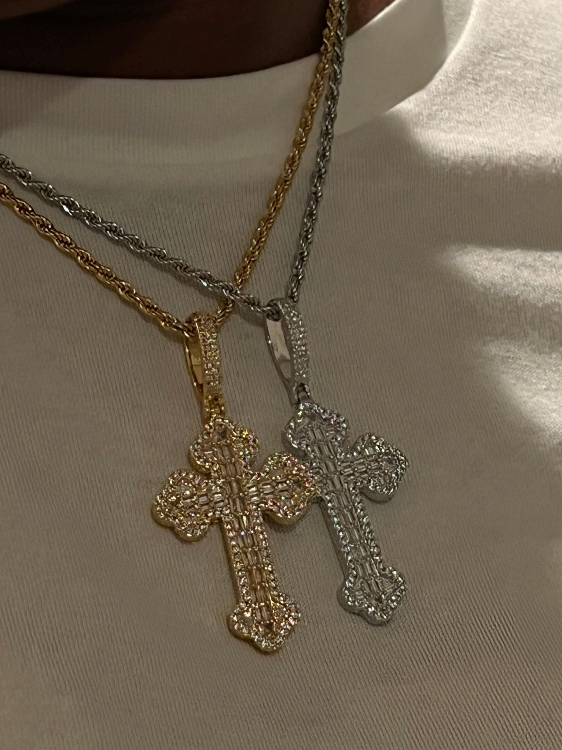 Geometry Cubic Zircon Rope Chain Cross Pendant Necklace